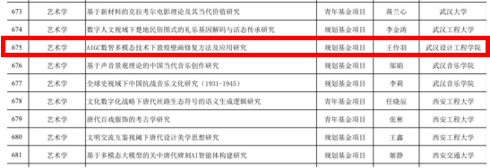 本网讯(通讯员 陈文敬)近日,教育部社科司正式公布了《2025年度教育部人文社会科学研究一般项目评审结果的公示》,其中我校创新设计研究院王伶羽老师申报的规划基金项目《AIGC数智多模态技术下敦煌壁画修复方法及应用研究》获批立项,创我校历史新高,展现了我校在人文社科艺术学领域科研实力和影响力。